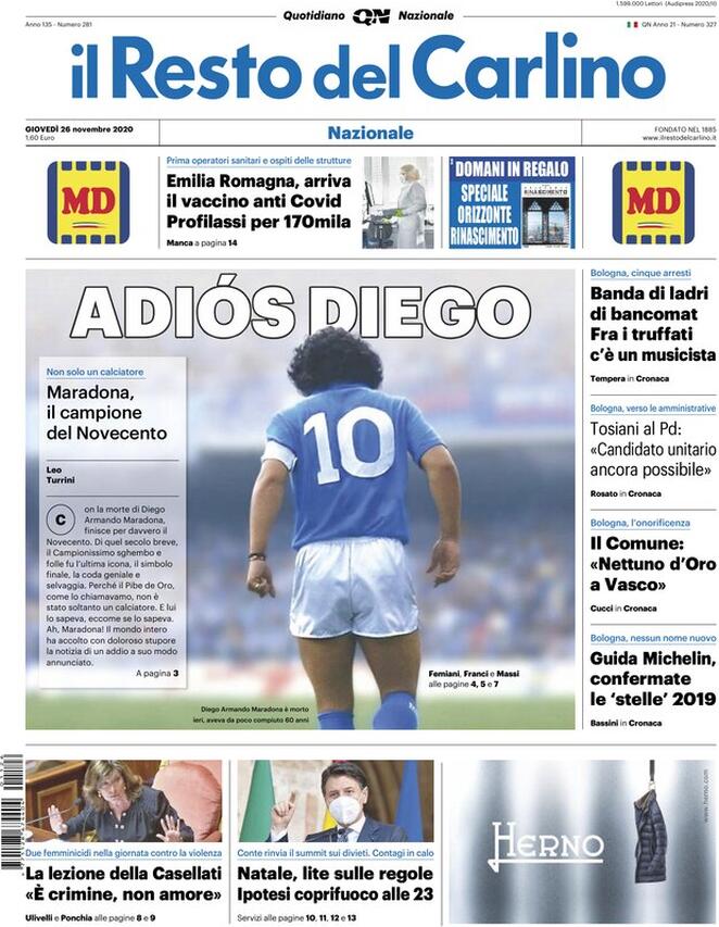 Todos los diarios italianos tienen a Maradona en sus portadas